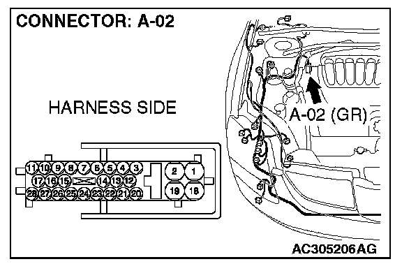 STEP 31. Check ABS-ECU connector A-02 for loose, corroded or damaged terminals, or terminals pushed back in the connector.