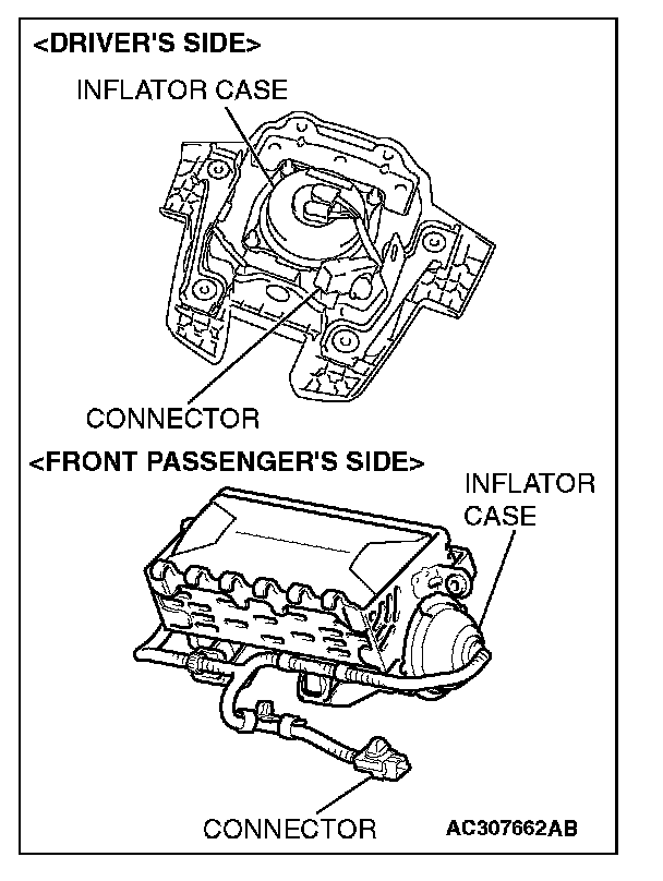 3. Check the air bag inflator case for dents, cracks or deformation.