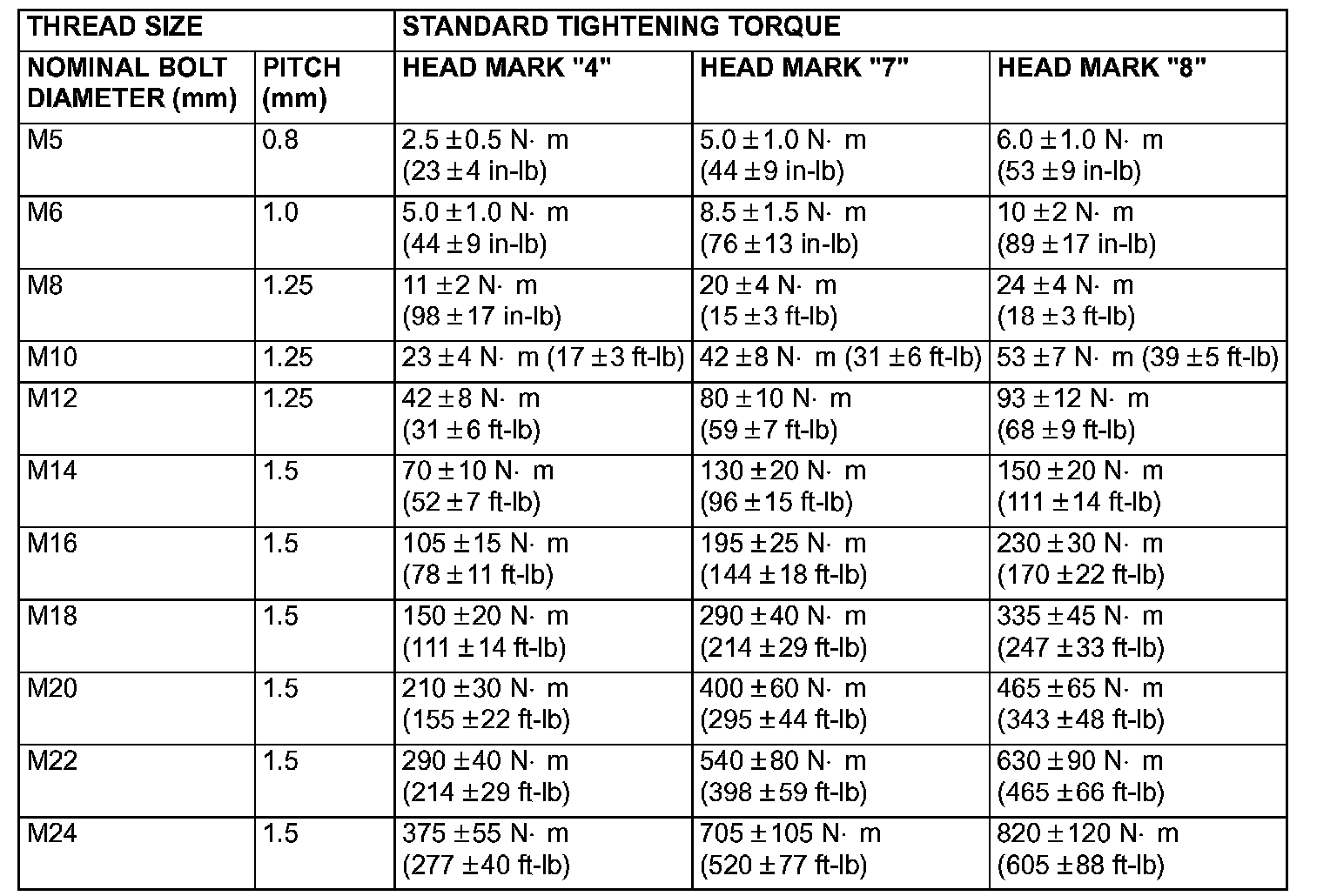 TIGHTENING TORQUEEach torque value in the table is a standard value for tightening under the following conditions.