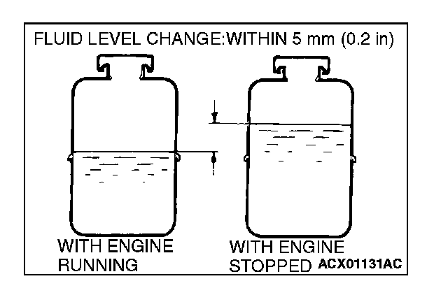 10. If the change of the fluid level is 5 mm (0.2 inch) or more, the air has not been completely bled from the system. The air bleeding procedure must be repeated.