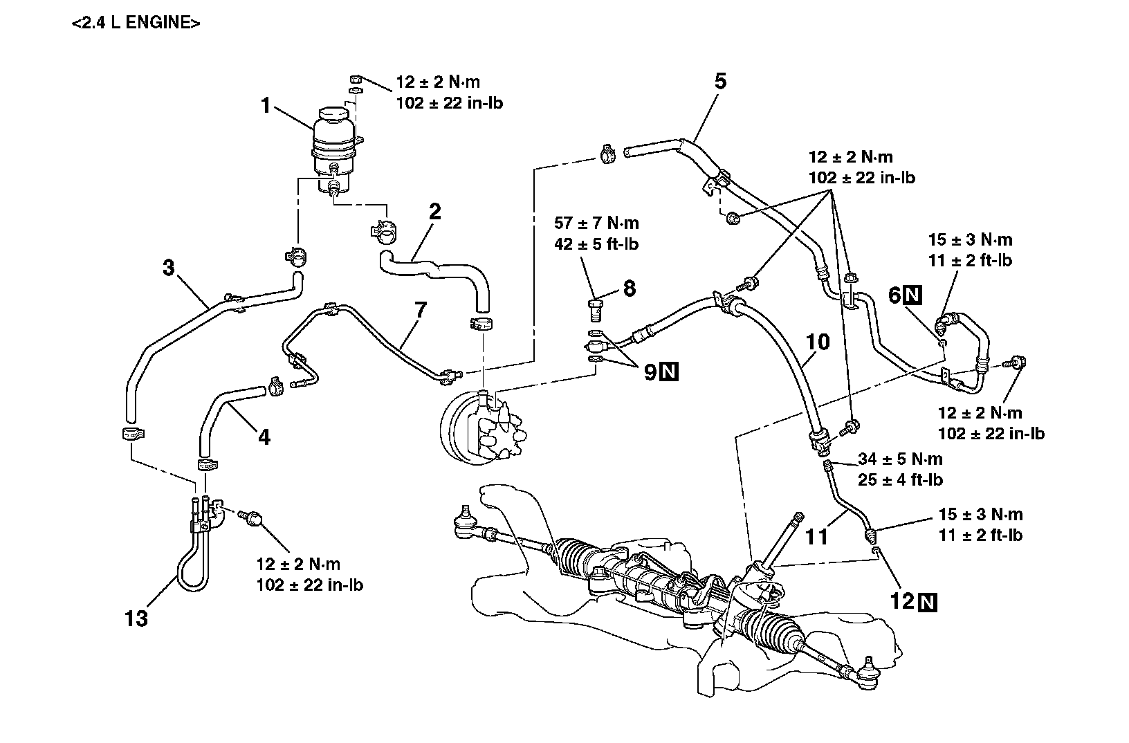 This document updated per manufacturer TSB# 08-37-003 and 09-37-001.POWER STEERING HOSES