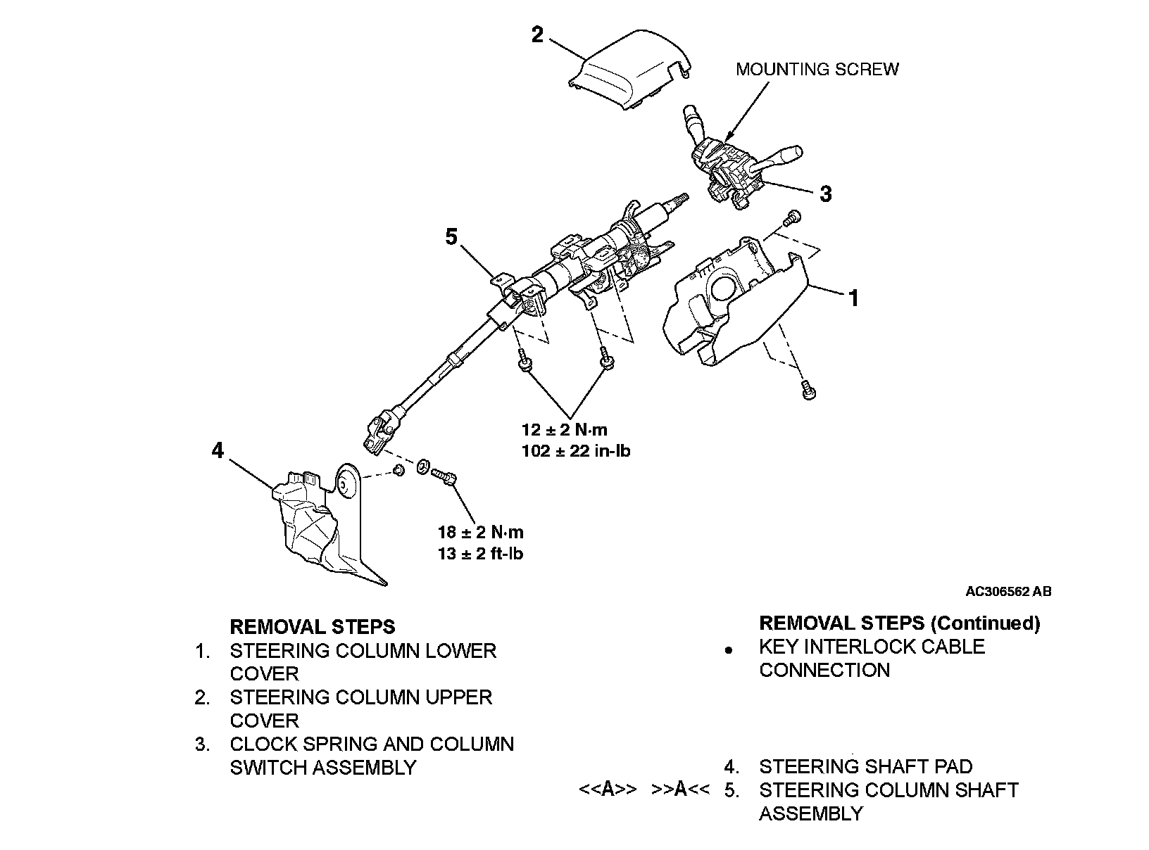 STEERING COLUMN SHAFT ASSEMBLYREMOVAL AND INSTALLATION