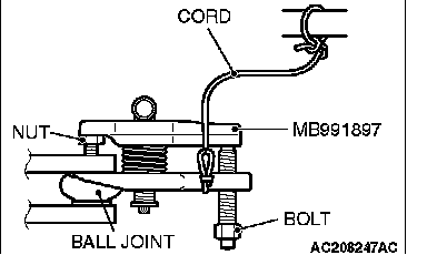 - Do not remove the nut from ball joint. Loosen it and use special tool MB991897 to avoid possible damage to ball joint threads.
