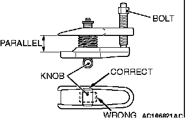 2. Turn the bolt and knob as necessary to make the jaws of special tool MB991897 parallel tighten the bolt by hand and confirm that the jaws are still parallel.