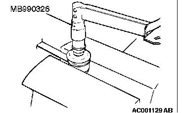 1. After shaking the ball joint stud several times install the nut to the stud and use special tool MB990326 to measure the breakaway torque of the ball joint.