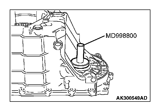 Use special tool MD998800 to tap the oil seal into the torque converter housing.