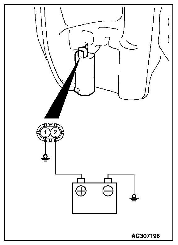 2. Check to see that the water is vigorously sprayed when connecting the positive battery terminal to terminal number 2 and terminal number 1 to ground.