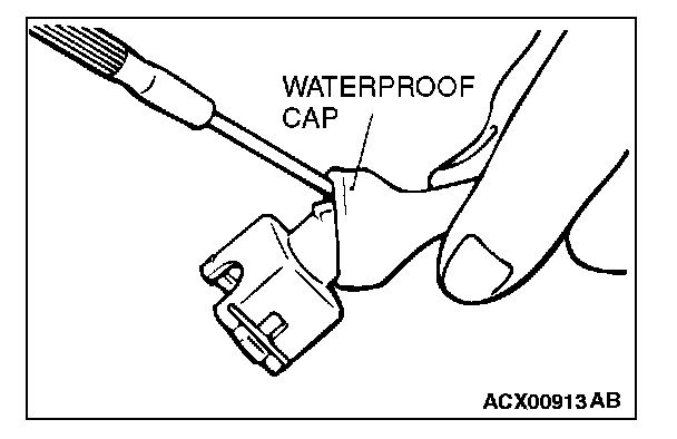 2. Insert the tip of a screwdriver [0.8 mm (0.03 inch) width] into the connector as shown in the figure, push it lightly to raise the housing lance, and pull out the terminal.