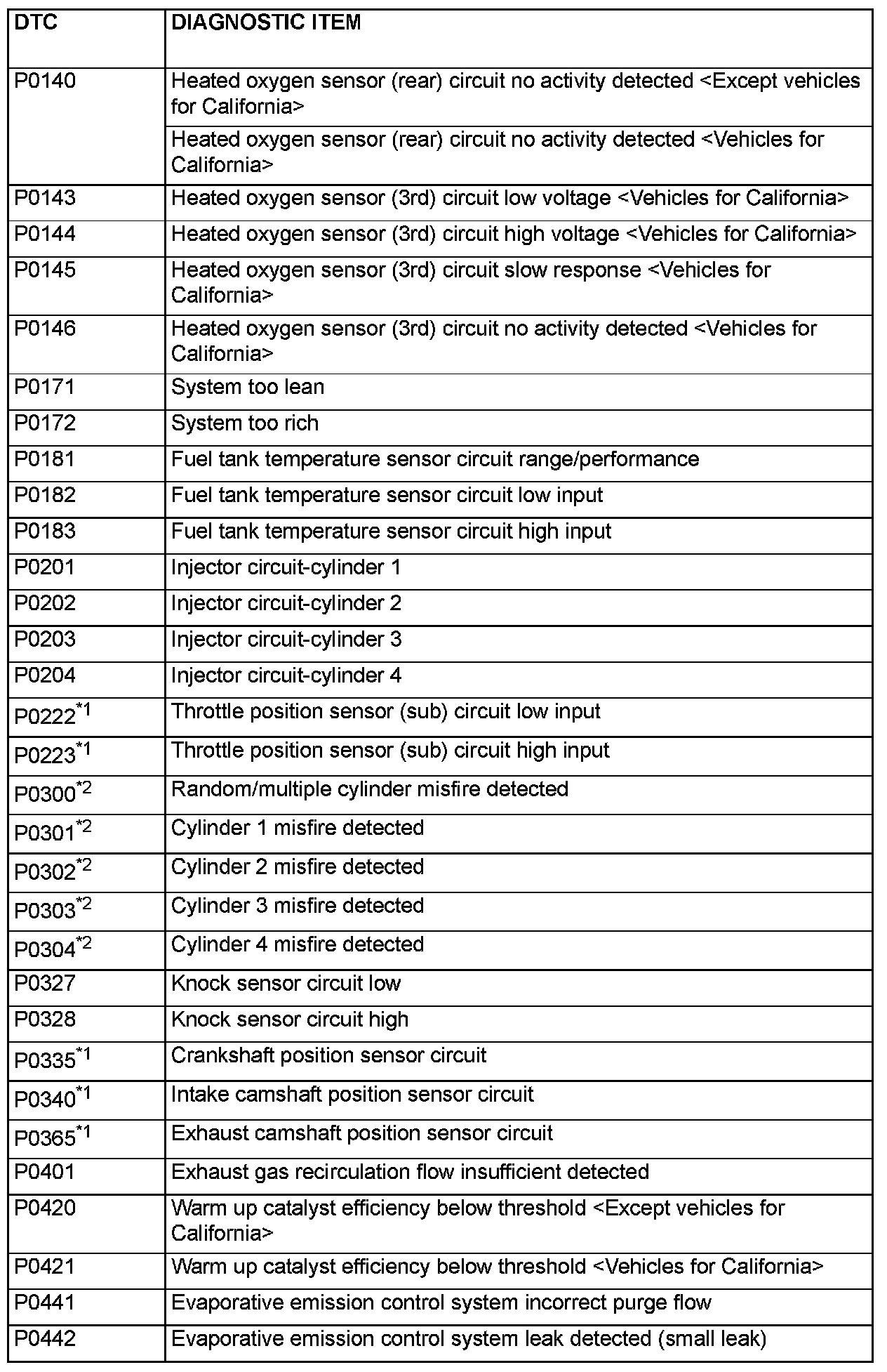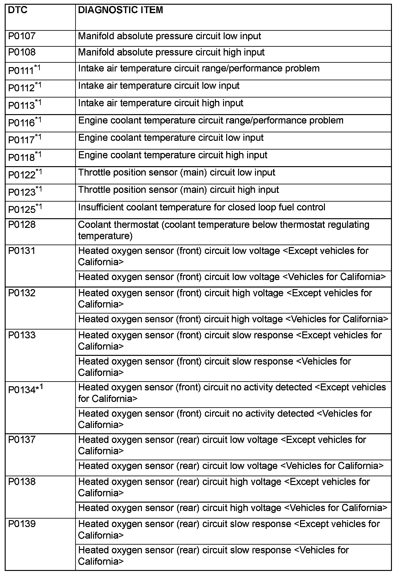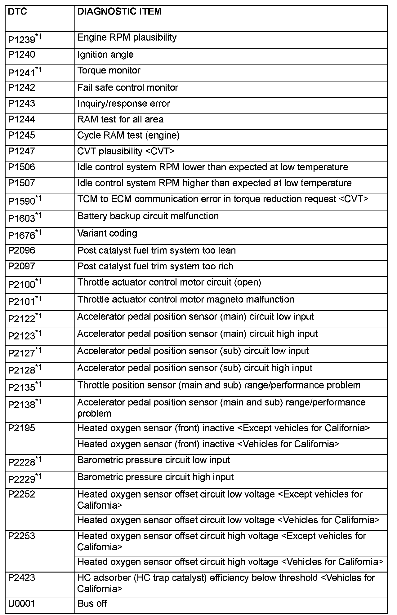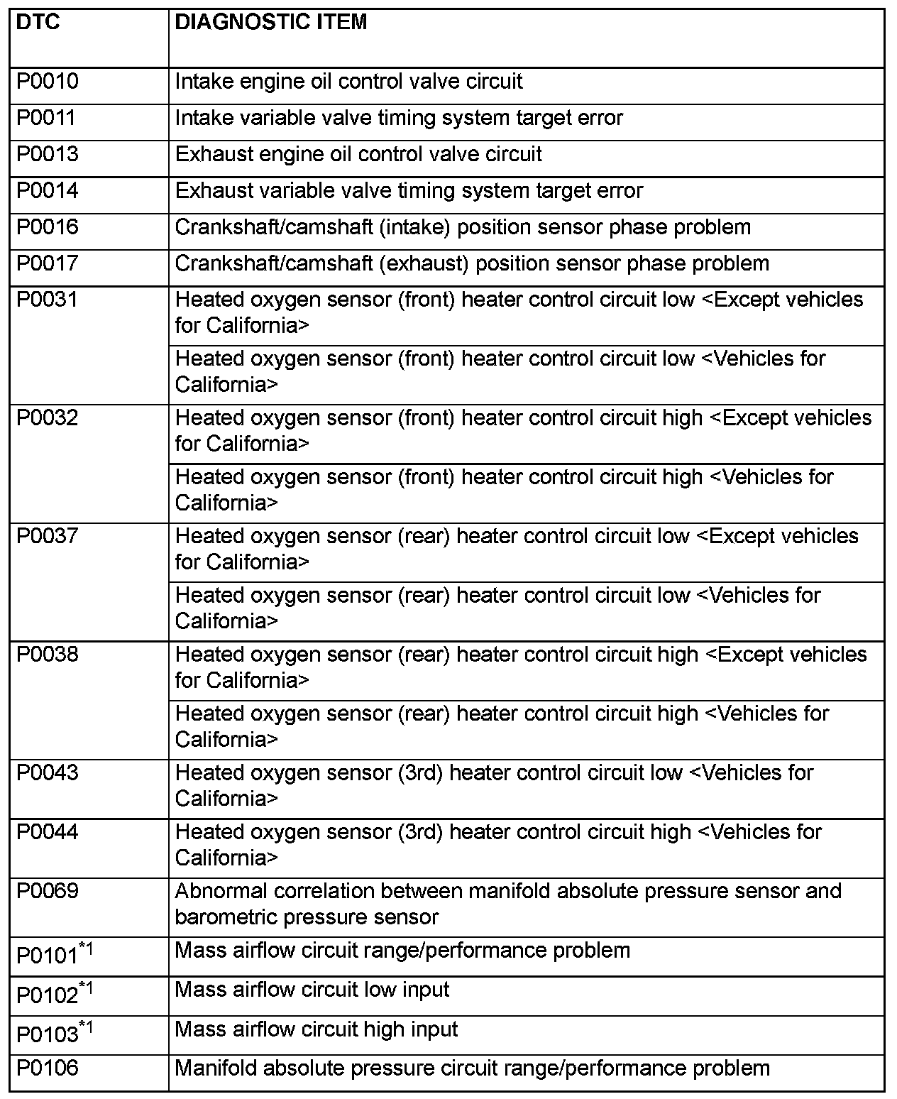 - After the ECM detects a malfunction, a diagnostic trouble code is recorded the next time the engine is started and the same malfunction is re-detected. However, for items marked with a "*1", the diagnostic trouble code is recorded on the first detection of the malfunction.