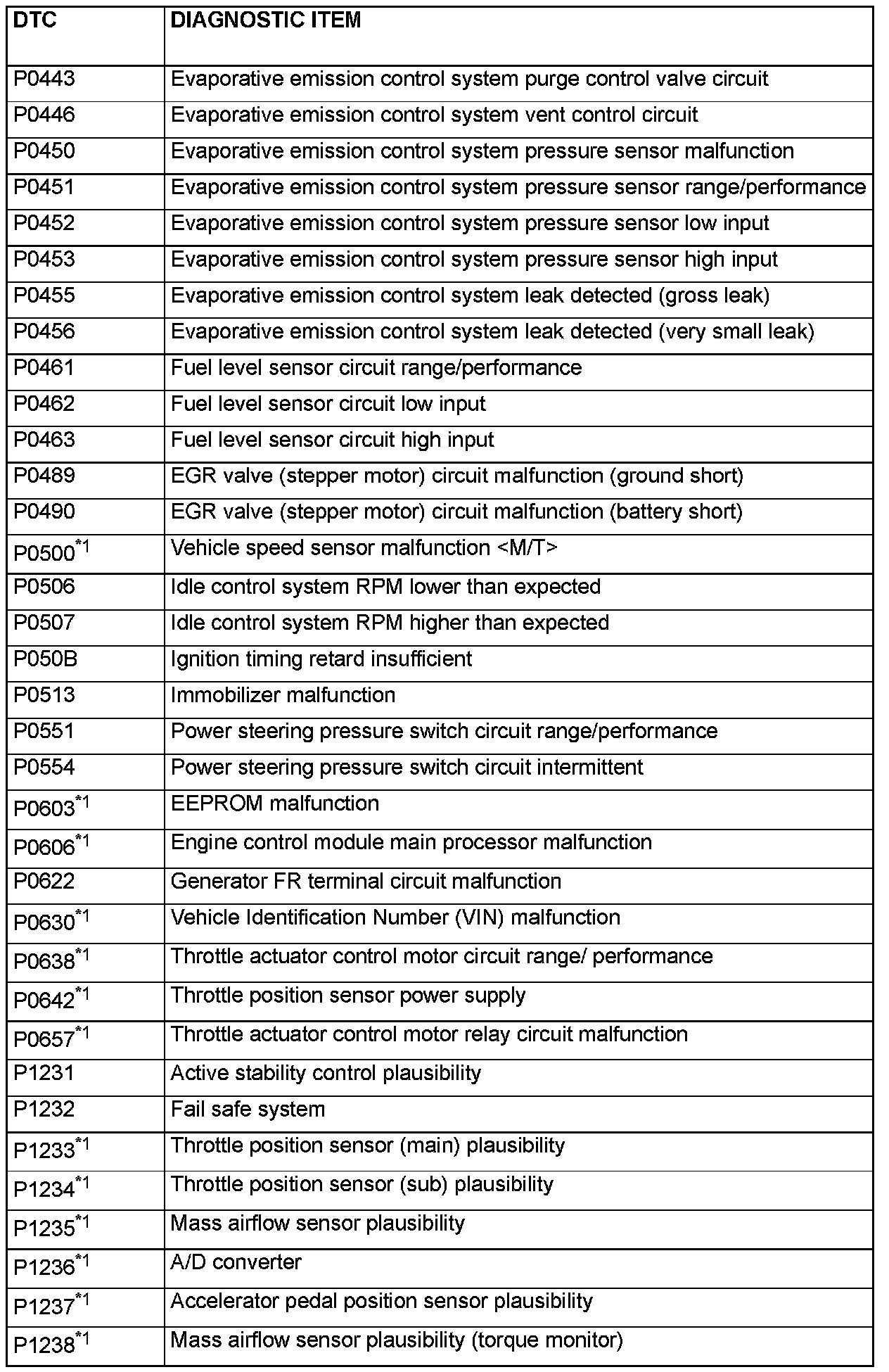 DIAGNOSTIC TROUBLE CODE CHARTWARNING: When touching the throttle valve, surely shut off the driving circuits of the throttle valve. In the event that the throttle valve is operated, a finger might be injured as the result of being caught by the throttle valve.