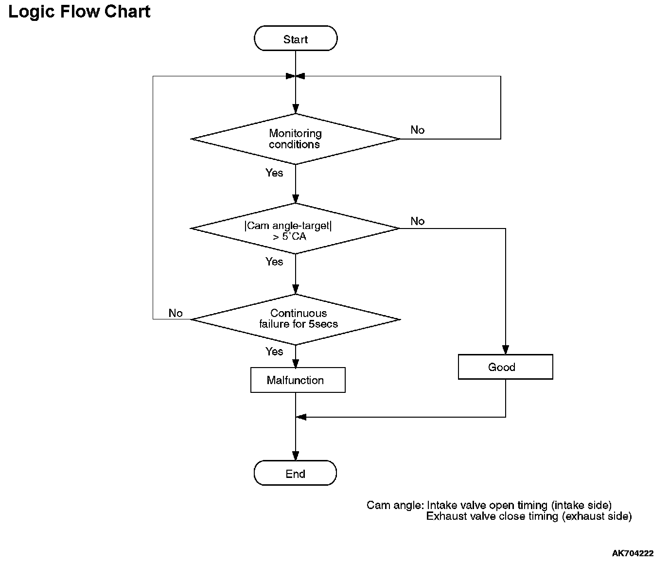 - The difference between the actual intake valve opening timing and the intake valve target opening timing is more than 5 degrees for 5 seconds.