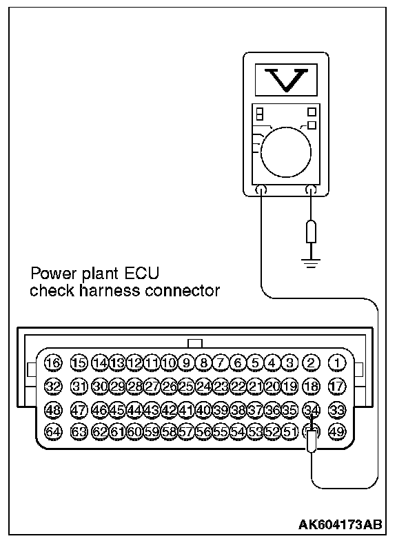STEP 6. Measure the power supply voltage at ECM connector B-108 by using power plant ECU check harness special tool MB992110.