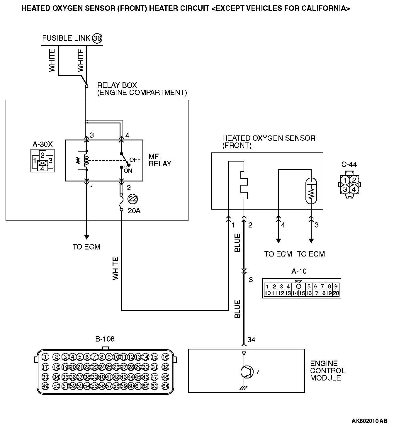 - Power is supplied from the MFI relay (terminal No. 2) to the heated oxygen sensor (front) heater.