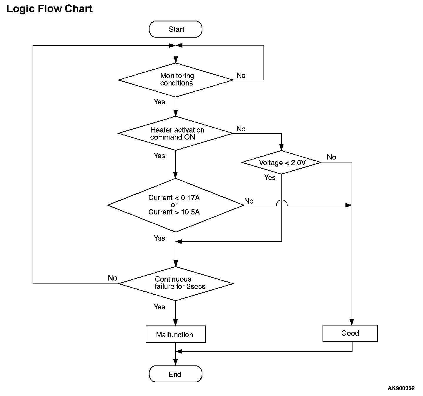 - The ECM checks whether the heater current is within a specified range when the heater is energized.
