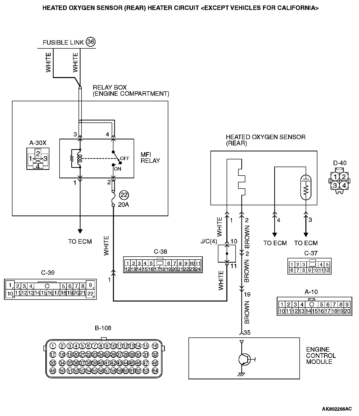 - Power is supplied from the MFI relay (terminal No. 2) to the heated oxygen sensor (rear) heater.