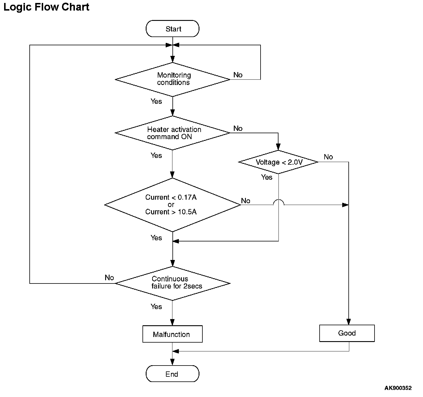 - The ECM checks whether the heater current is within a specified range when the heater is energized.