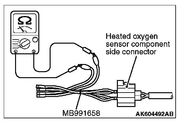 1. Disconnect heated oxygen sensor (rear) connector D-40 and connect test harness special tool, MB991658, to the connector on the heated oxygen sensor (rear) side.