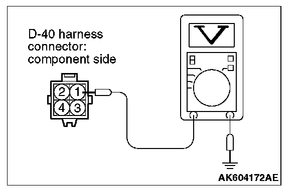 STEP 3. Measure the power supply voltage at heated oxygen sensor (rear) harness side connector D-40.