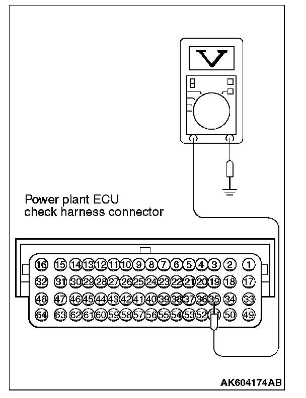 STEP 6. Measure the power supply voltage at ECM connector B-108 by using power plant ECU check harness special tool MB992110.