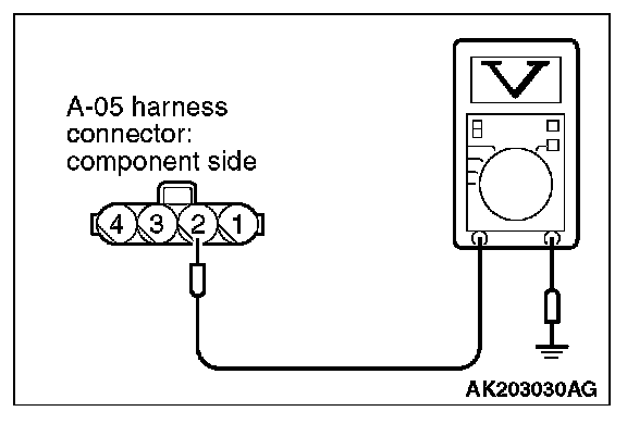 STEP 3. Measure the power supply voltage at mass airflow sensor harness side connector A-05.
