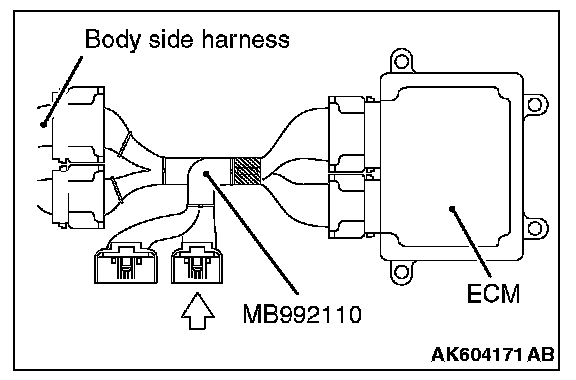 1. Disconnect all ECM connectors. Connect the power plant ECU check harness special tool MB992110 between the separated connectors.
