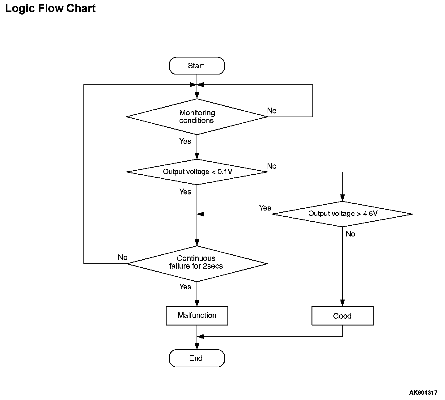 - Engine coolant temperature sensor output voltage is less than 0.1 volt for 2 seconds.