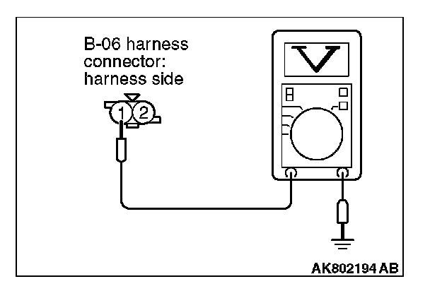 STEP 6. Measure the sensor supply voltage at engine coolant temperature sensor harness side connector B-06.