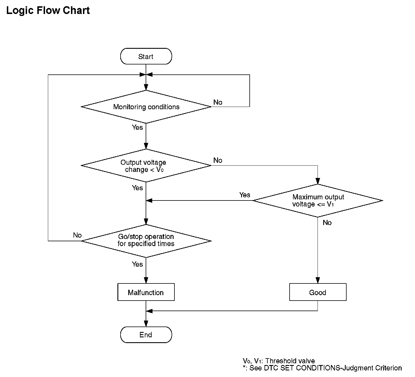 - The ECM checks for the heated oxygen sensor (rear) output voltage.