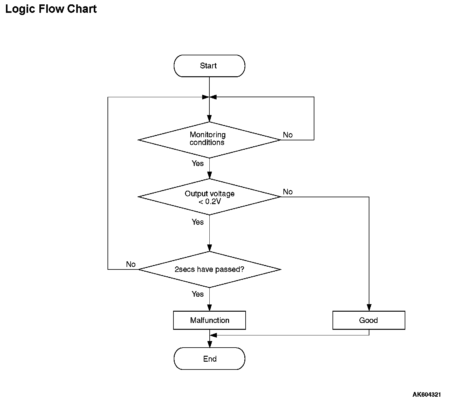 - Heated oxygen sensor (3rd) output voltage is less than 0.2 volt for 2 seconds.