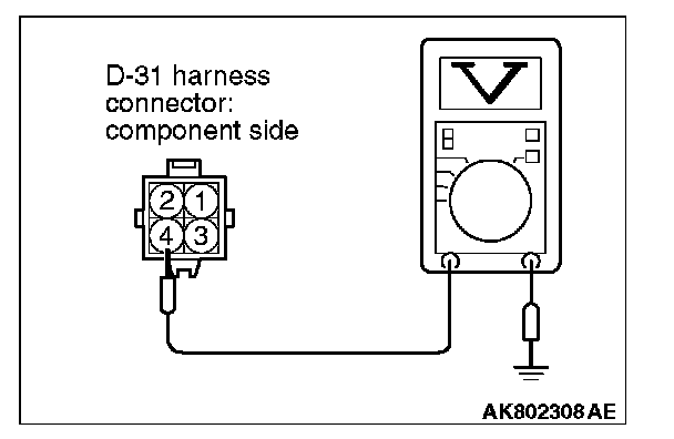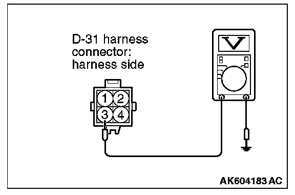STEP 2. Measure the sensor output voltage at heated oxygen sensor (3rd) connector D-31 by backprobing.