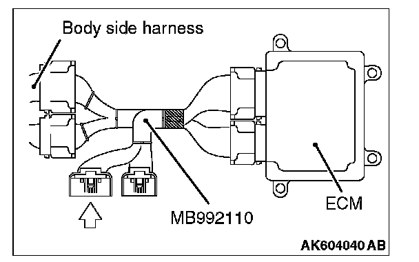 1. Disconnect all ECM connectors. Connect the power plant ECU check harness special tool MB992110 between the separated connectors.