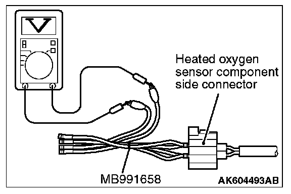 2. Set scan tool MB991958 to the data reading mode for item B1, Heated Oxygen Sensor (3rd).
