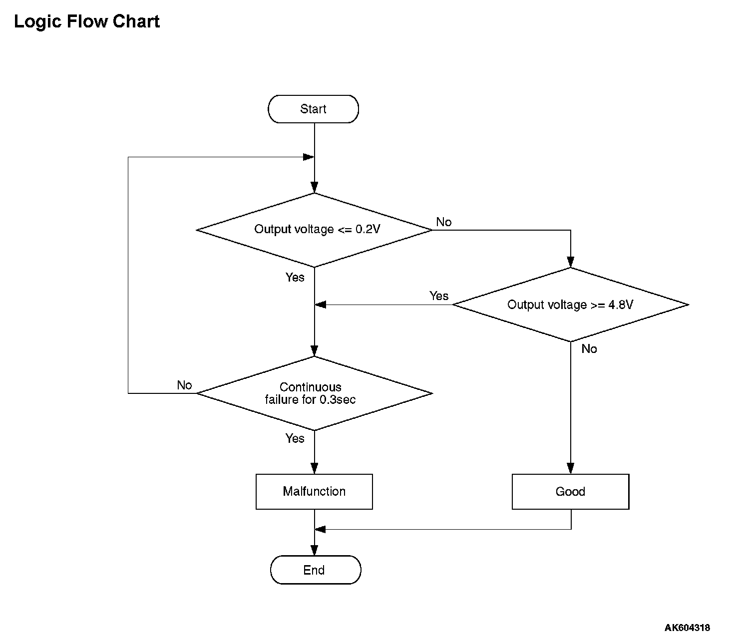 - Throttle position sensor (sub) output voltage is more than 4.8 volts for 0.3 second.