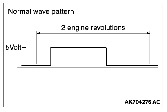 NOTE: When checking with the ECM side connector, disconnect all ECM connectors. Connect the power plant ECU check harness special tool MB992110 between the separated connectors. Then connect the oscilloscope probe to the check harness connector terminal No. 7.