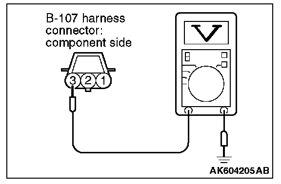 STEP 4. Measure the sensor supply voltage at exhaust camshaft position sensor harness side connector B-107.