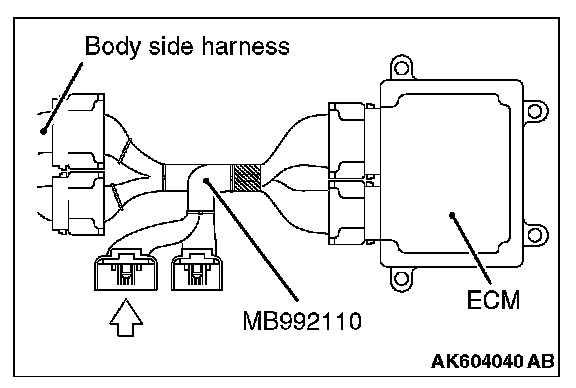 1. Disconnect all ECM connectors. Connect the power plant ECU check harness special tool MB992110 between the separated connectors.