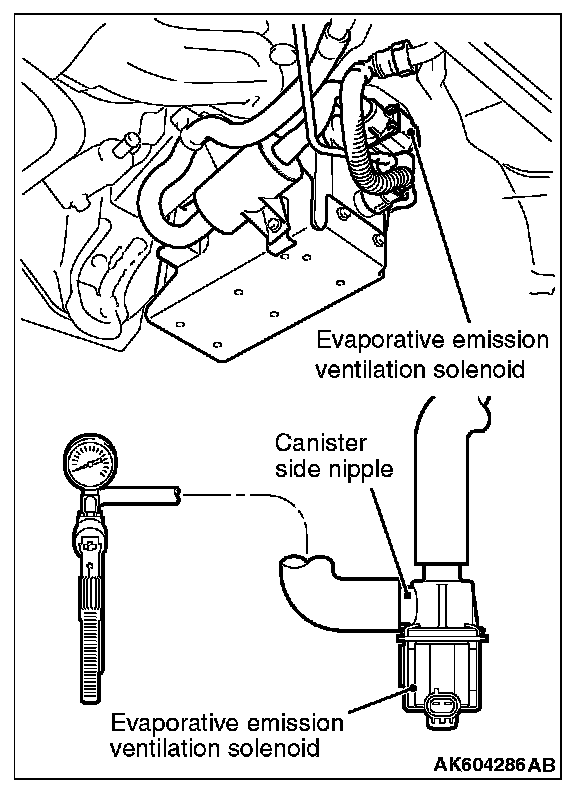 1. Connect a hand vacuum pump to the evaporative emission canister and plug the other nipples.