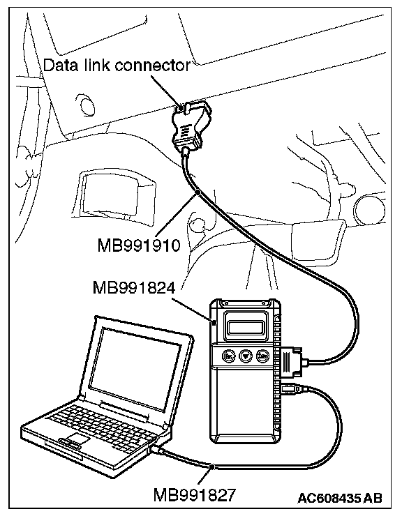 1. Connect scan tool MB991958 to the data link connector.