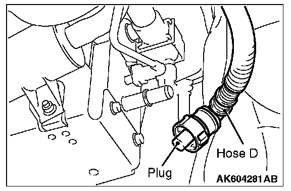 2. Plug the disconnected end of hose D.
