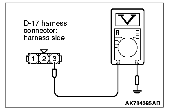 STEP 2. Measure the sensor supply voltage at fuel tank differential pressure sensor connector D-17 by backprobing.