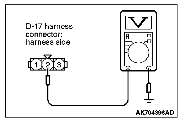 STEP 5. Measure the ground voltage at fuel tank differential pressure sensor connector D-17 by backprobing.