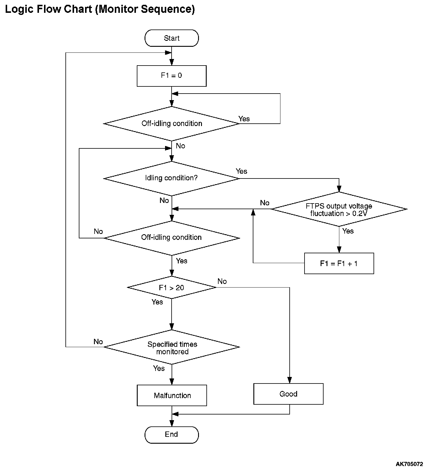 - The drastic pressure fluctuation is detected 20 times or more per engine idling, which is that the fuel tank differential pressure sensor output voltage is 0.2 volt or more.