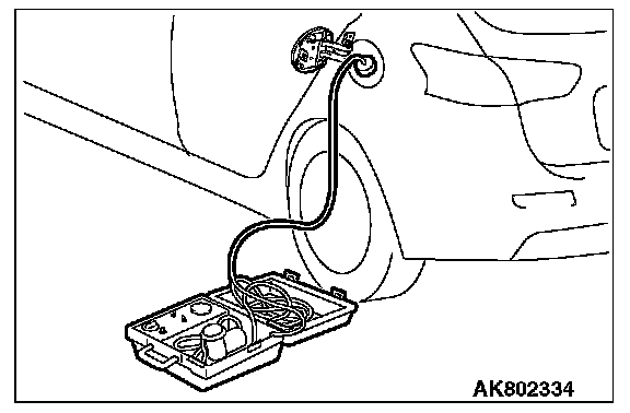 6. Connect the evaporative emission system pressure pump (Miller number 6872A) to the fuel tank filler tube by using fuel tank adapter (MLR-8382) and pressurize the fuel tank.