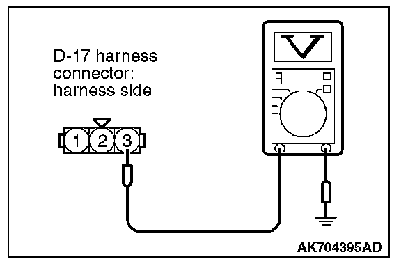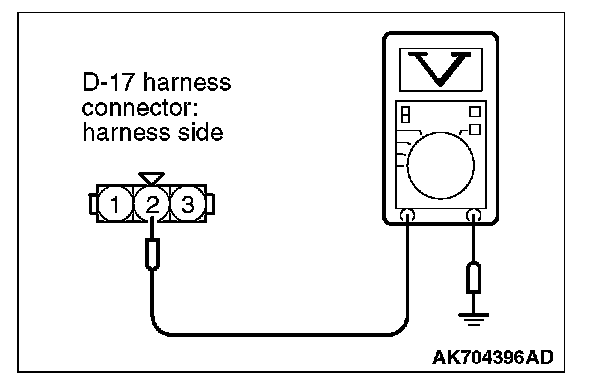 STEP 2. Measure the sensor supply voltage at fuel tank differential pressure sensor connector D-17 by backprobing.