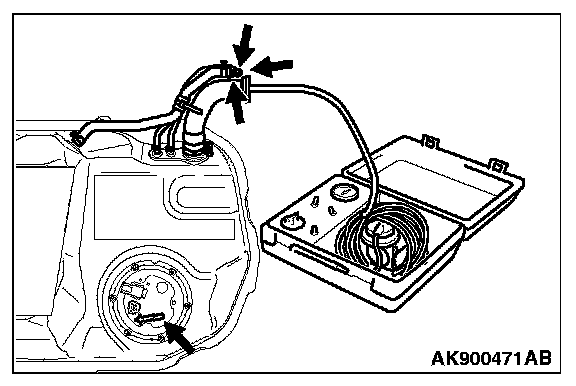 STEP 3. Check for leaks in evaporative emission hose A, chamber and hose B.