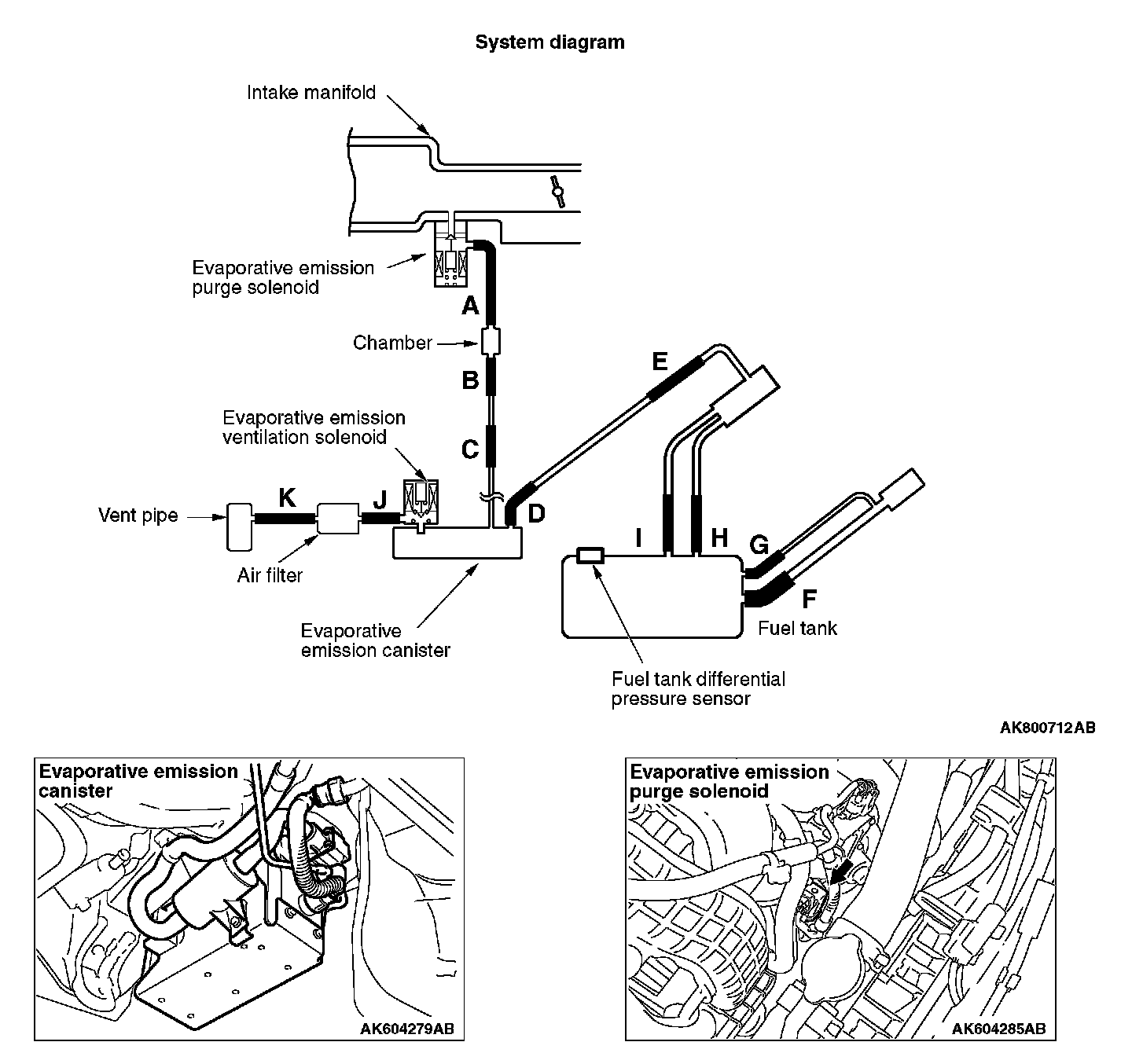 - When the evaporative emission purge solenoid and evaporative emission ventilation solenoid are closed, the change of the pressure in the fuel tank is less than 324 Pa (0.09 in.Hg).
