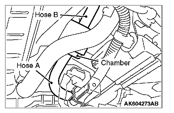 STEP 3. Check for leaks in evaporative emission hose A, chamber and hose B.