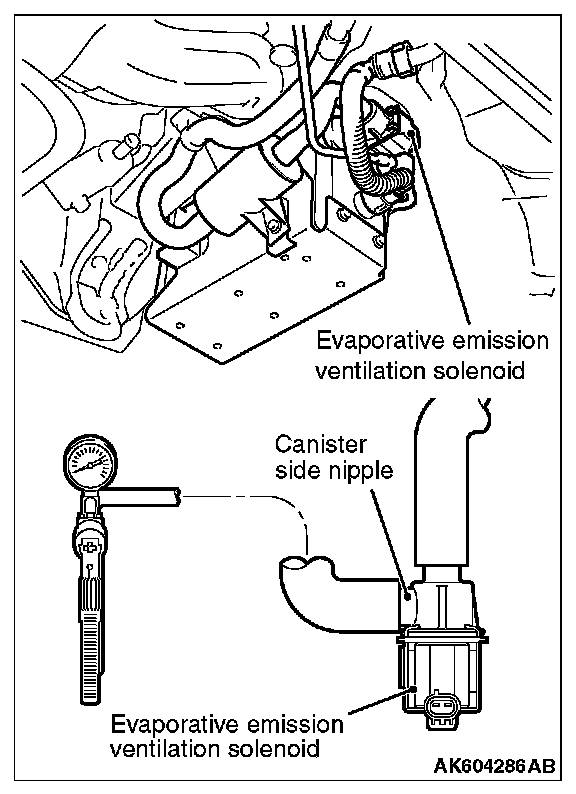 1. Connect a hand vacuum pump to the evaporative emission canister and plug the other nipples.