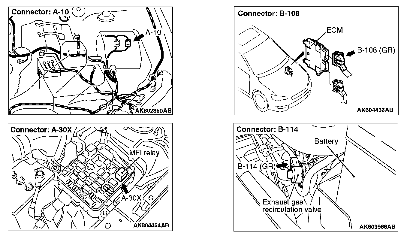 STEP 8. Check for harness damage between MFI relay connector A-30X (terminal No. 2) and EGR valve connector B-114 (terminal No. 2, No. 5).