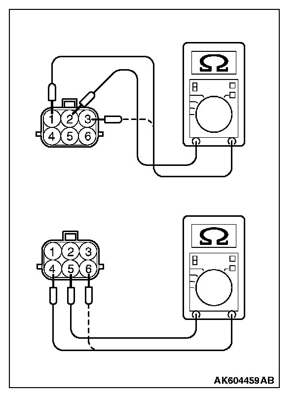 2. Measure the resistance between EGR valve side connector terminal No. 2 and either terminal No. 1 or terminal No. 3.